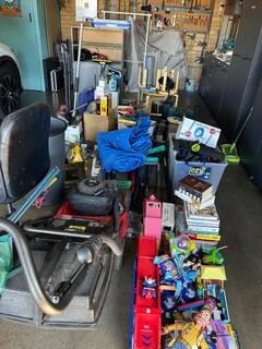 mainly shed tools, bench saw, Mig welder, radial arm saw etc. (see picture) some camping eqp't, water skis, sewing machine.