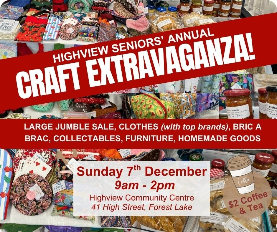 The Highview Seniors' annual craft and secondhand jumble sale! Homemade crafts, clothes (including top brands), bric a brac and much more!