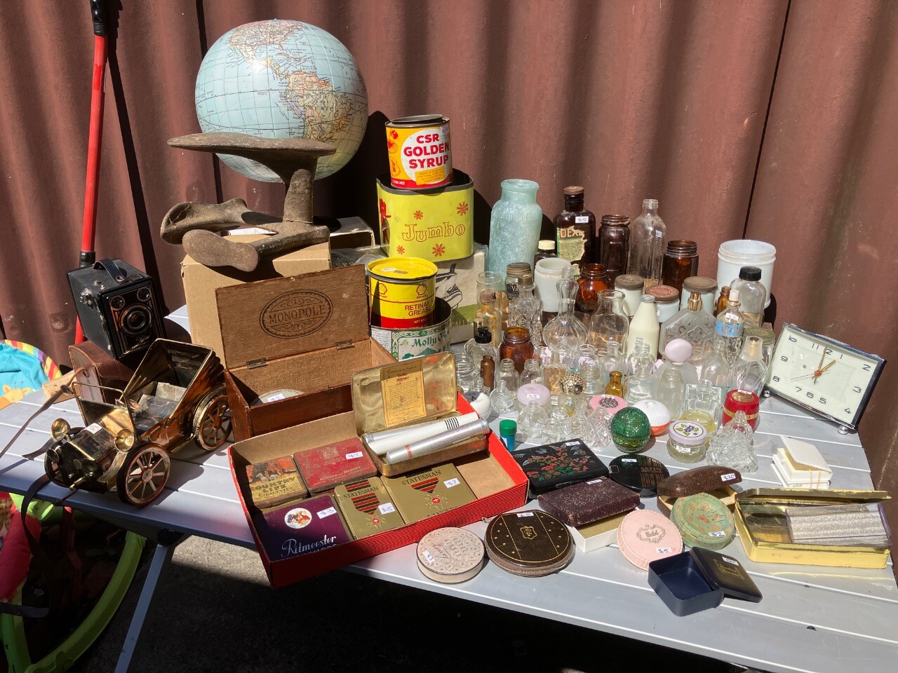 5A Jean st (it’s a house not a unit) Cheltenham vic THIS WEEKEND. Saturday 28th Sunday 29th 7.30am to 5pm Ph text only pls 0459 704 813 Elderly parents downsizing. Items need to go, priced accordingly Vintage tins and bottles Mini alcohol bottle collection Perfume bottles Drink coaster collection Camping equipment (no tents) Garage / shed items -few old tools Glassware Household Vintage money box collection Knick knacks Books Vintage dolls Toys Vintage full size alcohol bottles Old cameras Every item is priced !