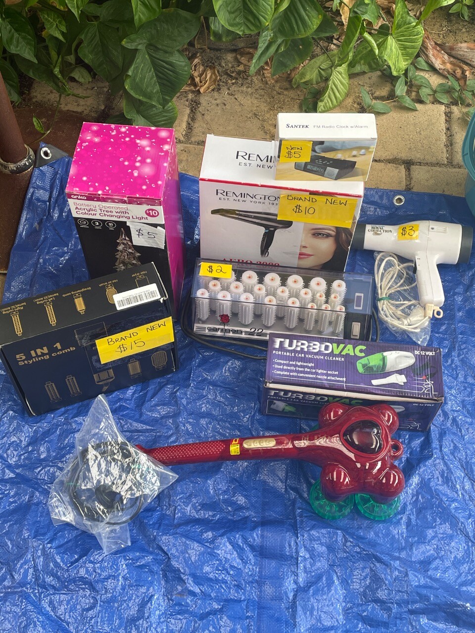 House hold items: decorative, appliances, bedding, fabric, clothes, some furniture, toys, art sets, ornaments etc.