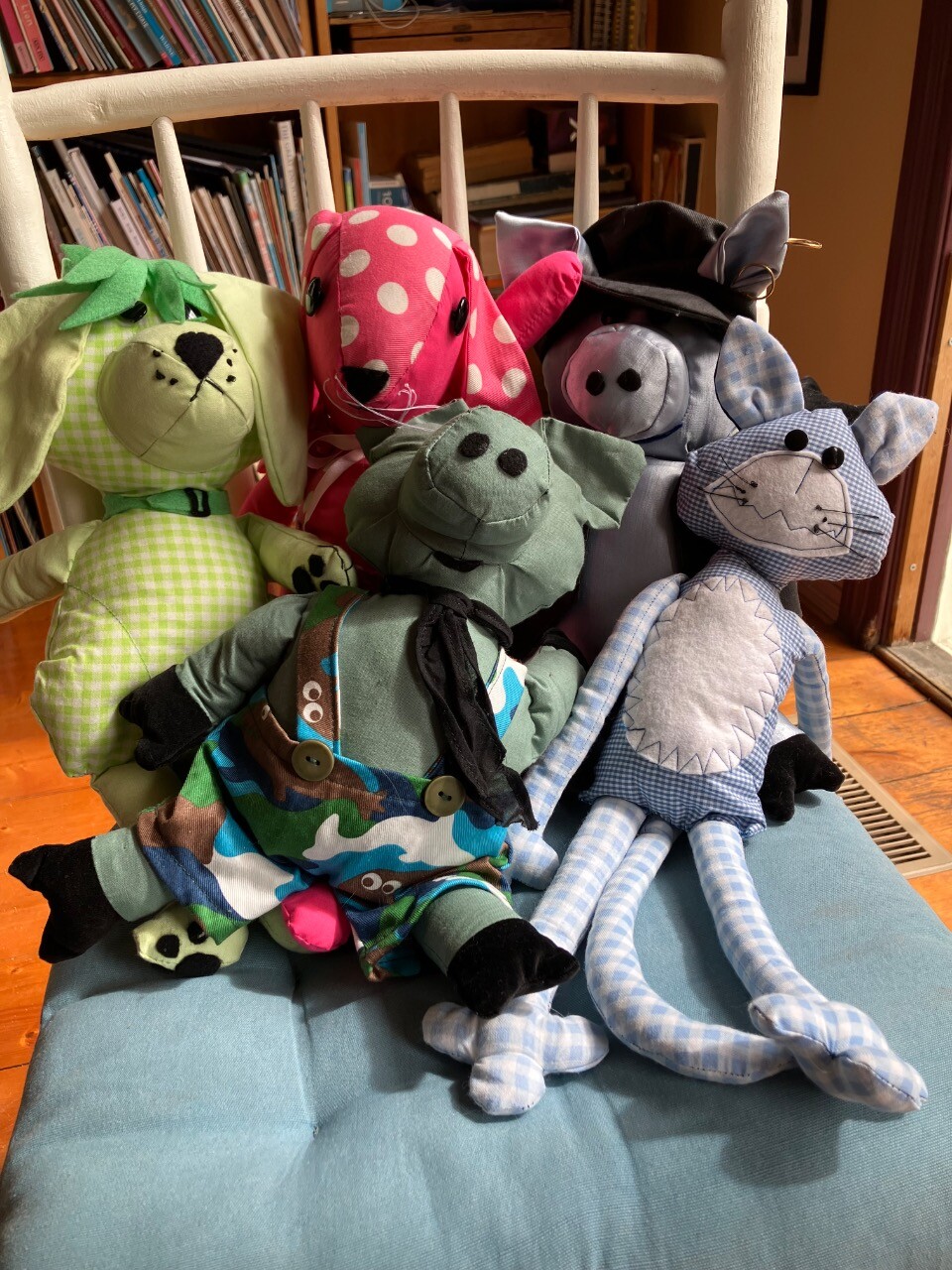 one off original designed soft toys new, xmas decorations new, children's games, jig saw puzzles and items received for presents that have never been used. A vintage style children's wicker pram with English wheels. Wall art made from natural objects new.