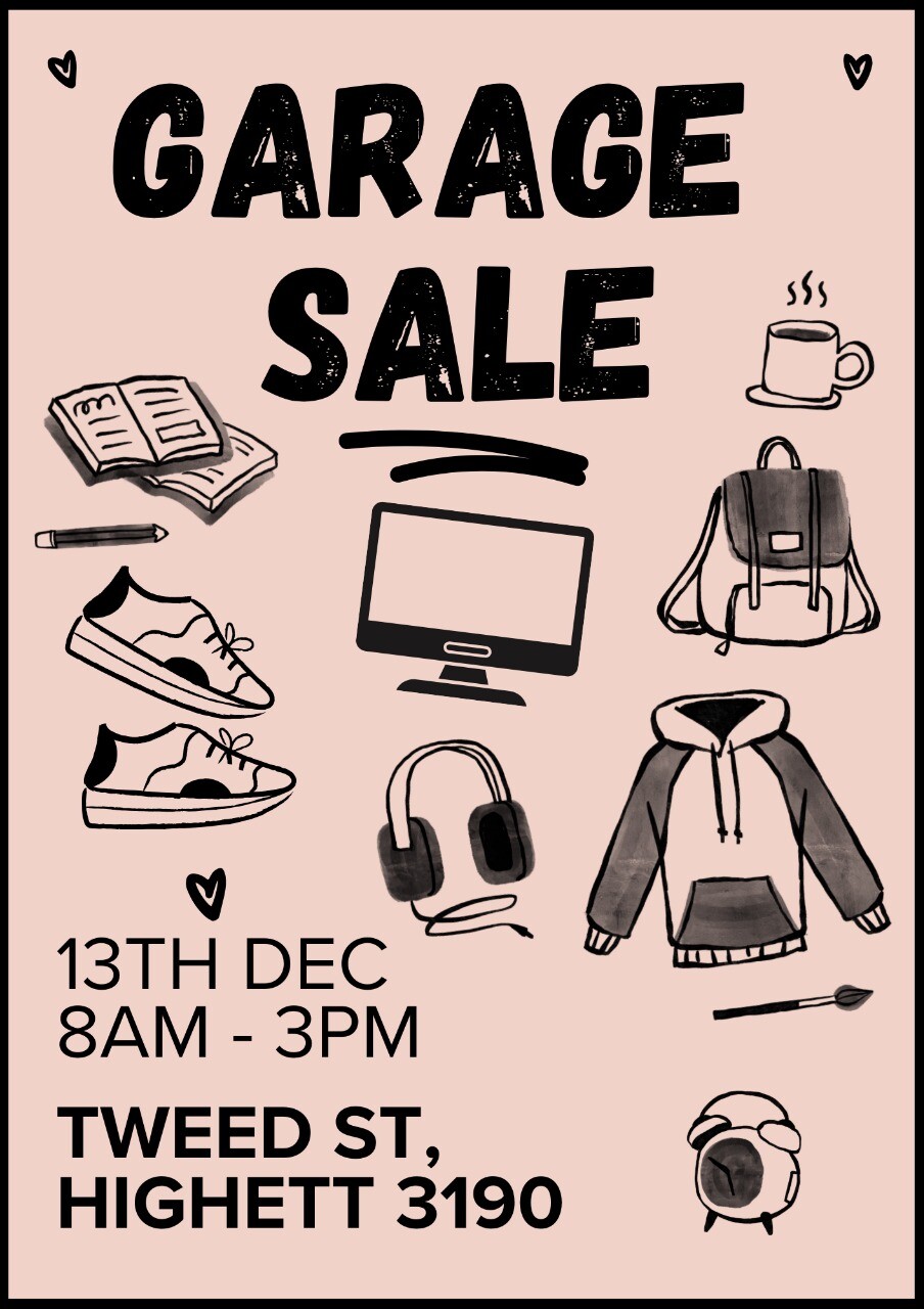 Garage Sale 🏡 SAT 13 DECEMBER, 8 AM - 3 PM TWEED STREET, HIGHETT 3190 NEW & USED: -New Men's & Women's Clothing -New Kids Clothing -New Electronics -Household Items -Hats -Bags -Computer Stuff & Accessories -Books -Shoes -Décor -Tools & so much more! Feel free to DM with any inquiries and see you there!