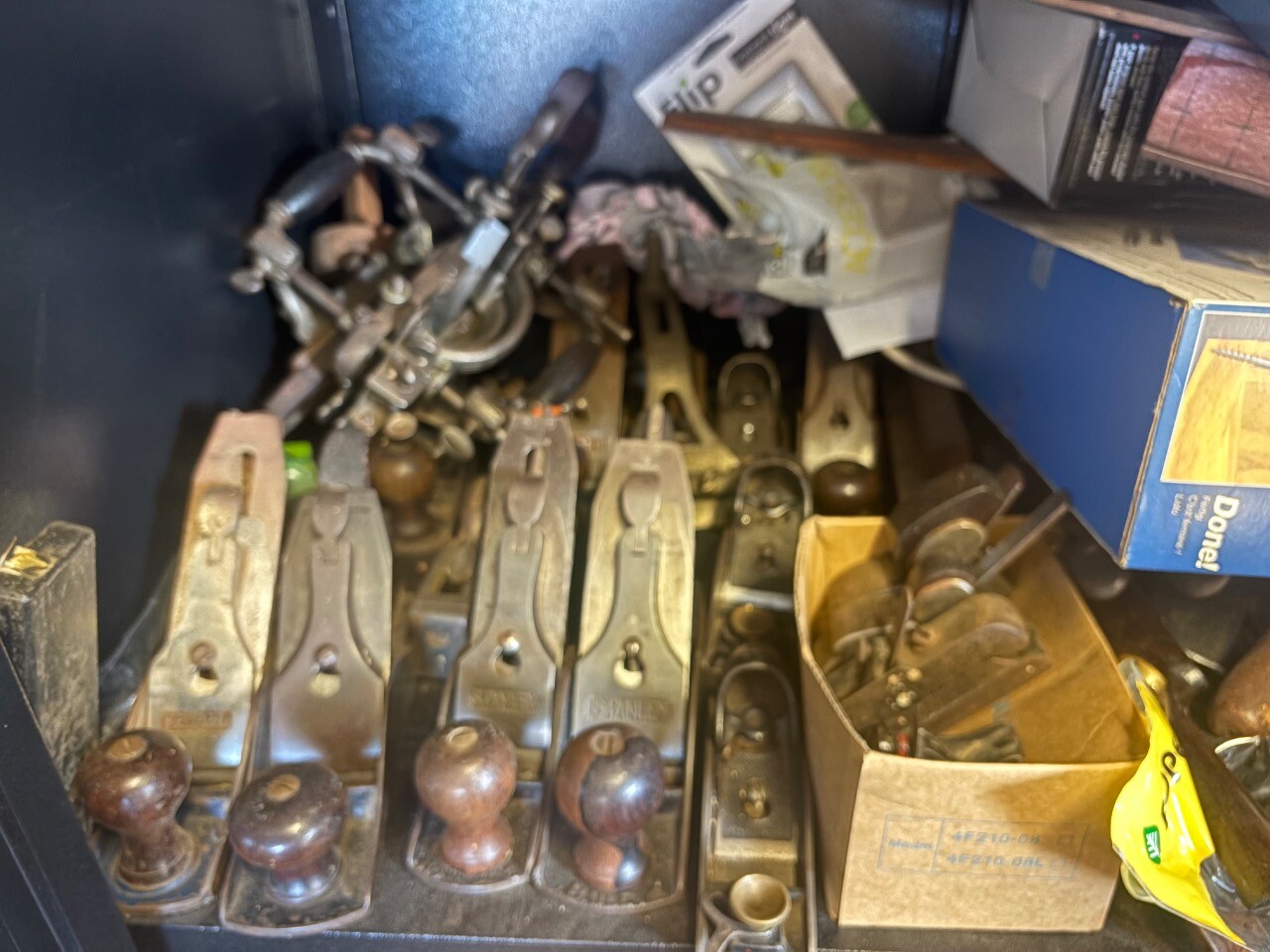 Lots of vintage and antiques. Woodworking tools (Stanley, Mathieson, Preston disston etc ), antique furniture, school desk, vintage pedal car. Sewing machine lots of bits and pieces. Vinyl LPs, Vintage stereo system, speakers. Vintage toys and games