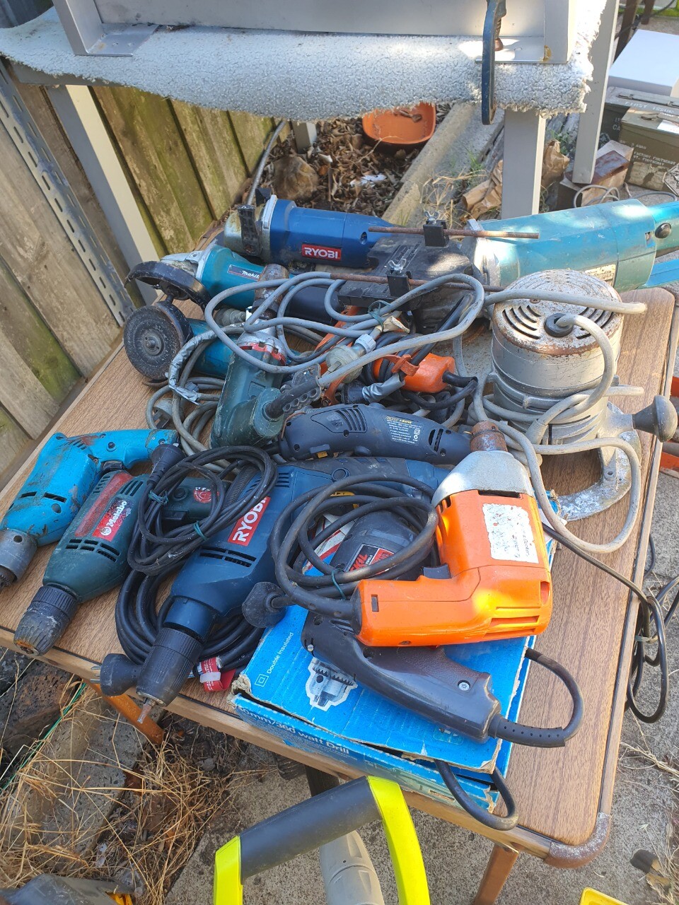 Water pump, drill gun, planers,angle grinder, circular saw, bench grinder, SanderS, lot tools, spanners,jigsaw, rotor,karcher flore cleaning machine, Bosch air blower, and industrial lens, price is negotiable Friday morning 8 Am starts.