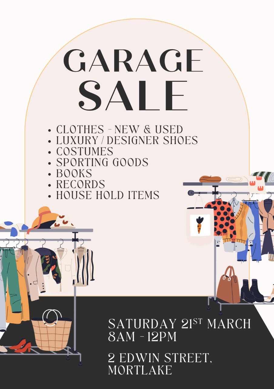 Moving sale - everything must go! Come along and grab a bargain this Saturday in Mortlake. There will be lots of great items at cheap prices โ perfect for a weekend treasure hunt.