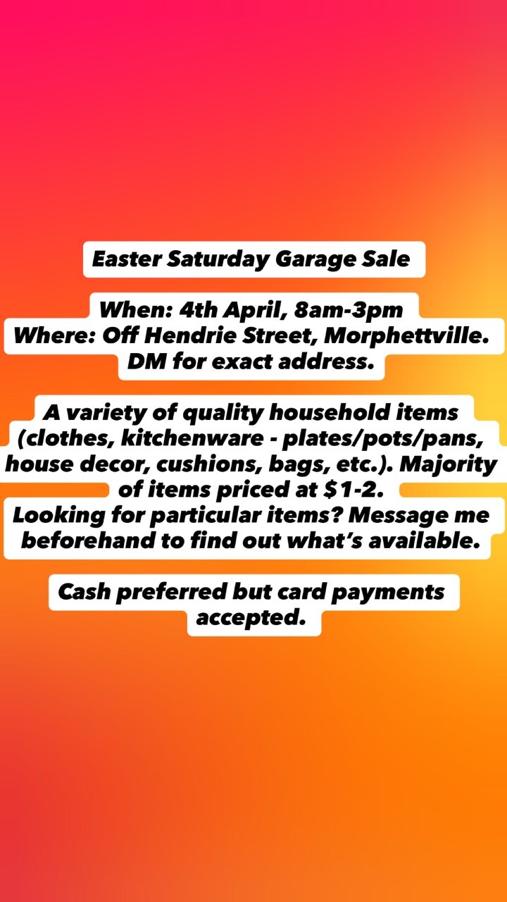 Morphettville/Park Holme Garage Sale Easter Saturday